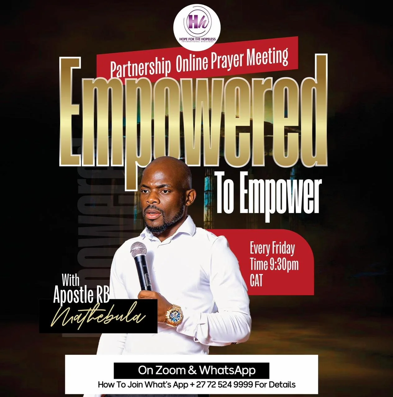 Experience a heightened level of personal anointing and direct impartation as a member of the Anointed Access Circle. This esteemed partnership tier grants you all the benefits of the lower levels, including the weekly prayer and fasting resources and exclusive prophetic insights. Furthermore, you will receive access to a weekly Zoom meeting with other partners at this level, where Apostle RB Mathebula will speak and pray directly into your life and minister prophetically both on an individual and to the group. This intimate setting provides a unique opportunity for personalized spiritual growth, powerful impartation, and collective breakthrough in a dynamic atmosphere of faith.